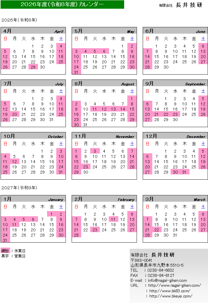 お電話・FAXによるお問い合わせは、上記の長井技研まで直接どうぞ。